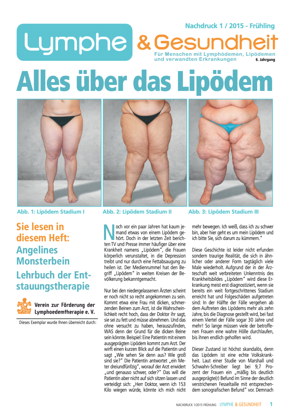 Für weitere Informationen haben wir für Sie eine Patient:innenbroschüre sowie ein detaillierten Sonderdruck "Alles über das Lipödem" zum Download zur Verfügung gestellt.